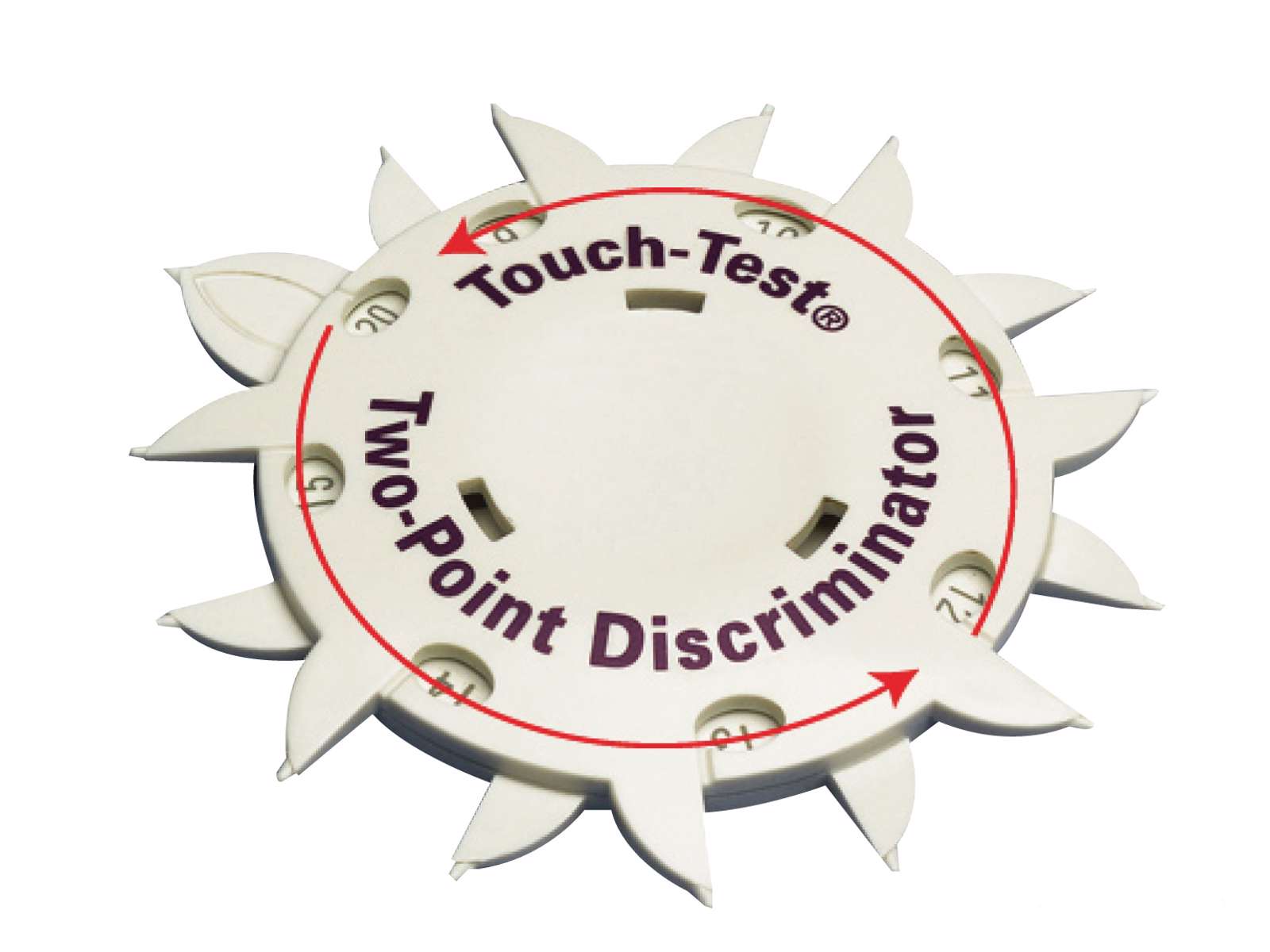 På fysia hittar du Two-Point Discriminator mätanordning som kan ställas in i ett intervall ifrån 1 till 15 mm avstånd mellan 2 avrundade spetsar.