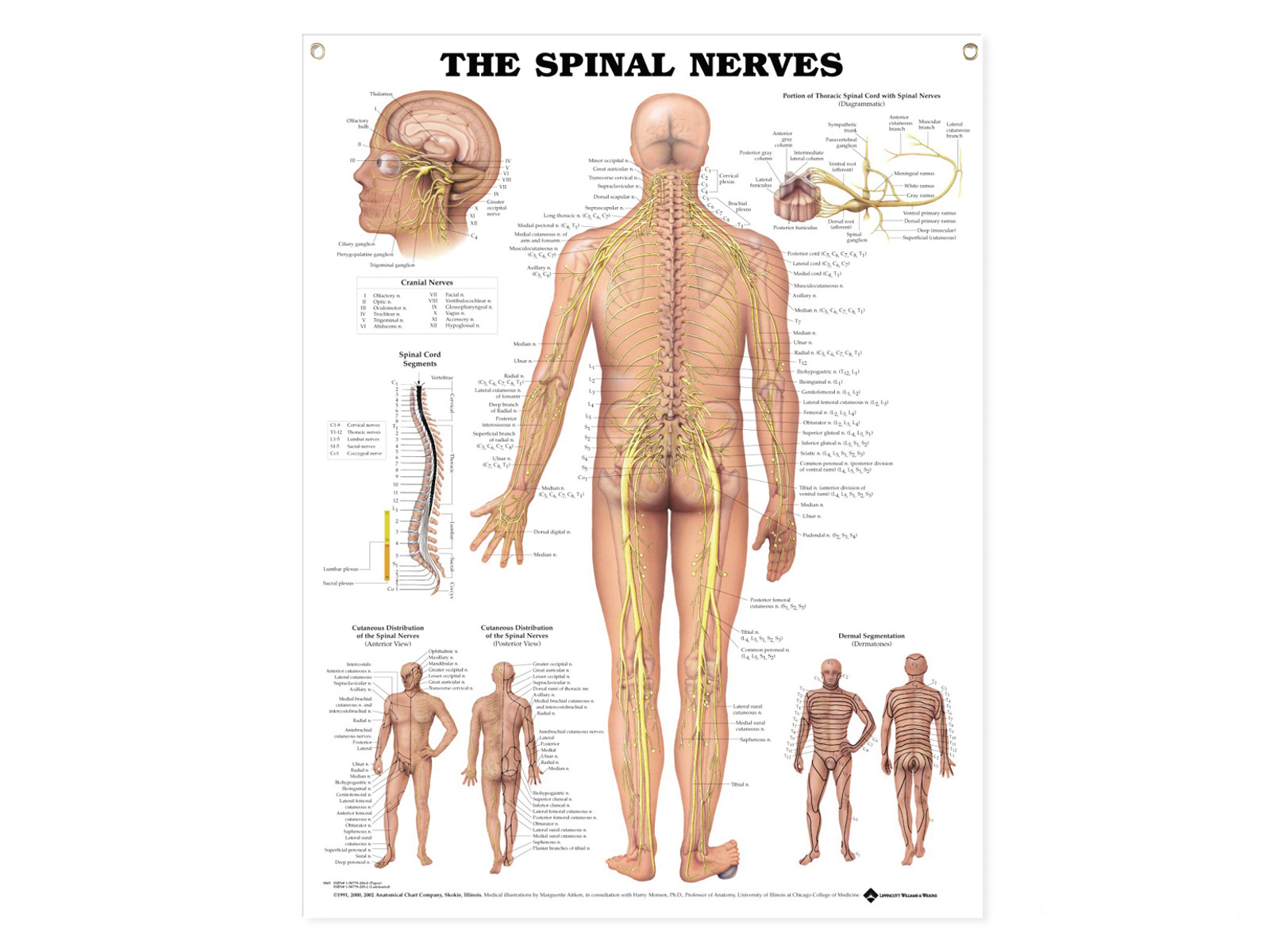 Anatomisk Affisch, Ryggradens Nervsystem. Medicinetiskaffisch till för vägg dekoration i väntrum, på vårdcentral i mottagningsrumeller i skolor.