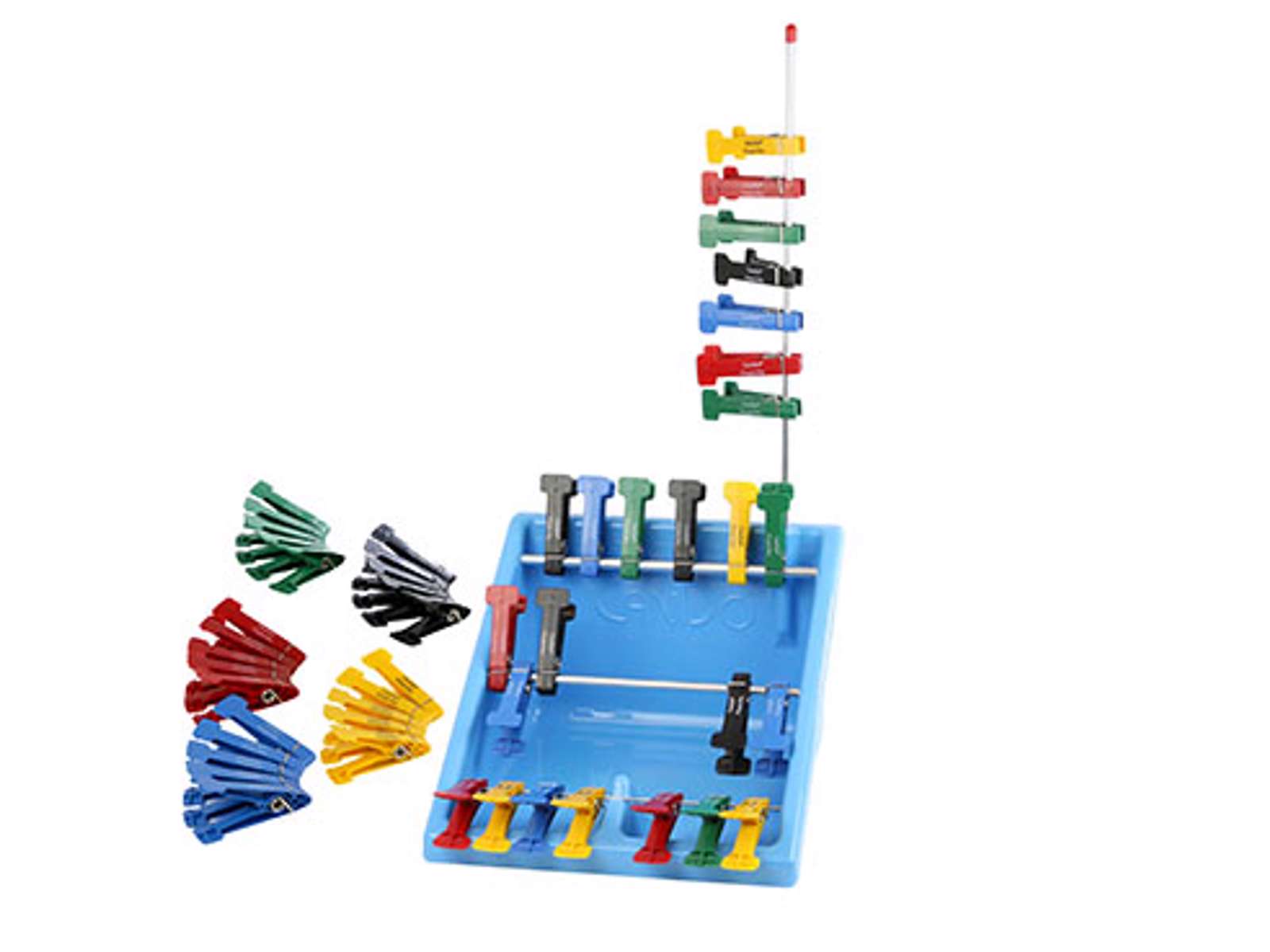 Satsen består av: 35 klämmor - 7 i varje färg.