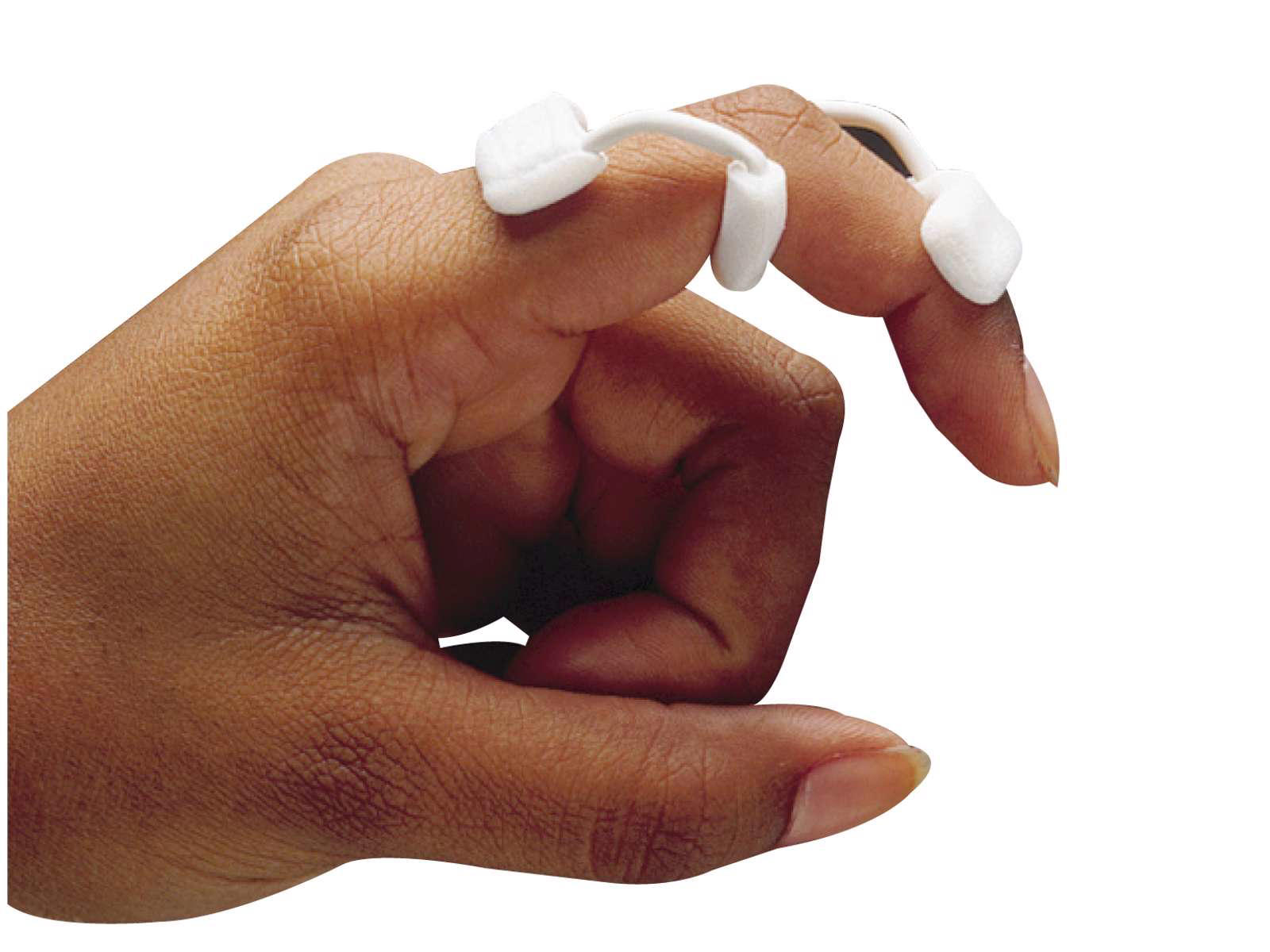 Dynamisk flexionsfingerskena lämplig för breda och svullna fingrar. Används för att minska svanhalsdeformitet och förlängningstäthet i tummens IP-led eller finger-PIP-leden.