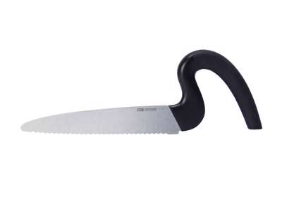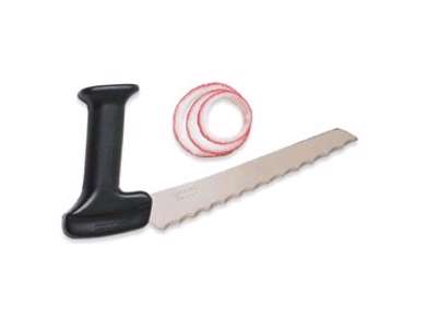 Det ergonomiska handtaget är mjukt, för halkfri komfort och håller handen högt medan bladet i rostfritt stål skär igenom även de knaprigaste bröden eller de segaste biffarna.