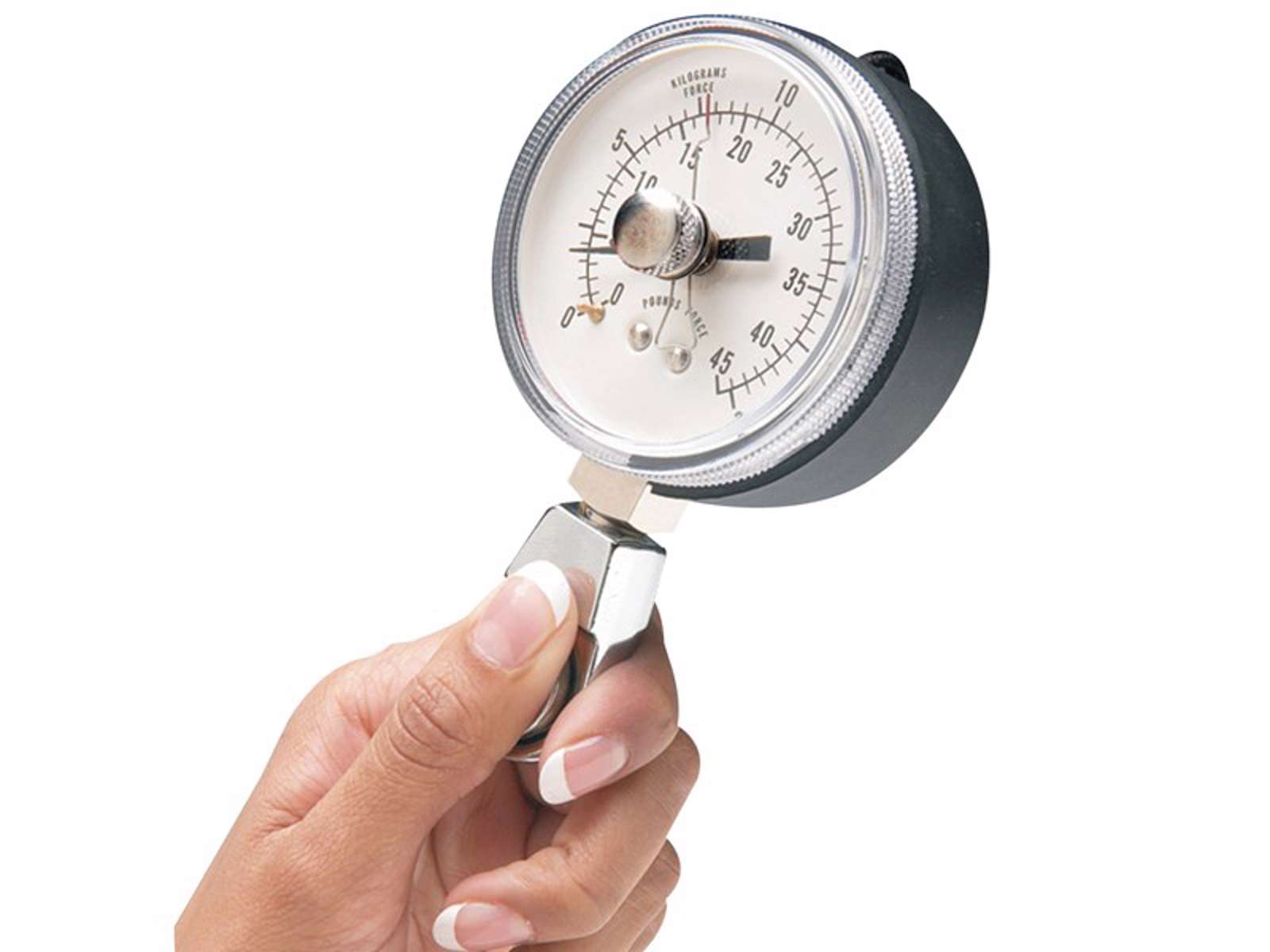 Den konkava formen på ytan förhindrar att tummen glider under mätningen..