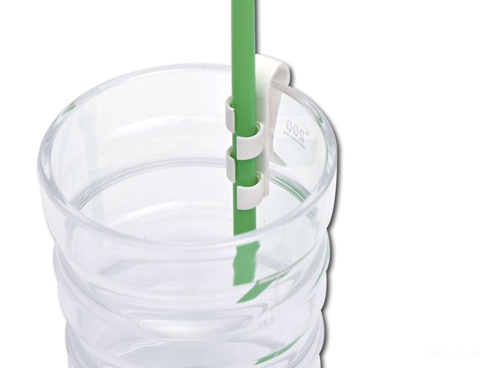 Sugröret klickas fast i hållaren av plast som du fäster på glas- eller kopp kanten.