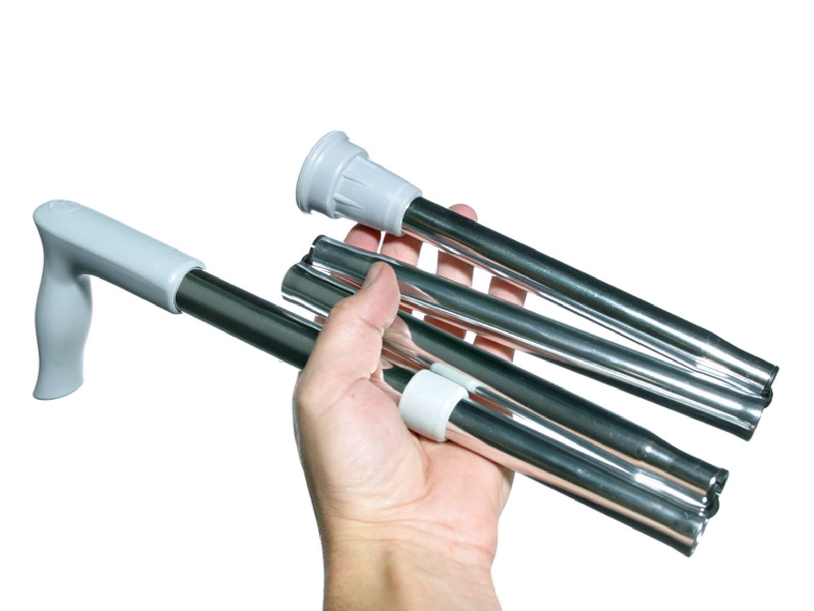 Käppen är ihopfällbar och kan lätt förvaras i en väska.