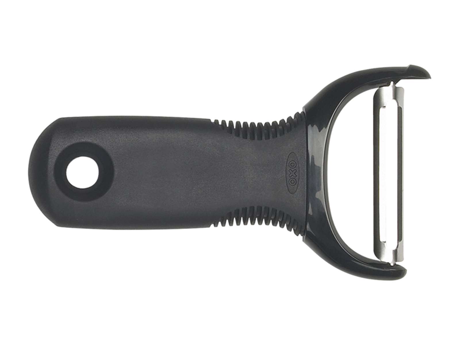 Den här OXO Good Grips potatisskalaren har ett vasst blad i rostfritt stål som enkelt glider igenom frukter och grönsaker, även med de tjockaste skal.