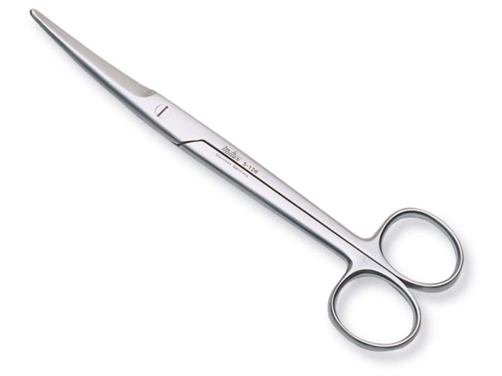 Krökt sax för användning av bandage och förband.