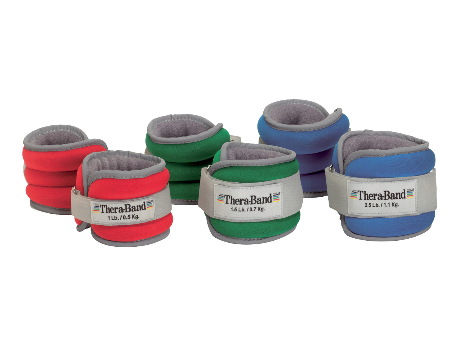 Högkvalitativa ankel-/handledviktsmanschetter från TheraBand. Du kommer att kunna hitta 3 olika modeller i vårt sortiment. De kommer i set om 450 gram, 680 gram och 1130 gram, var och en med sin egen färg.